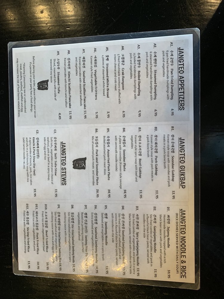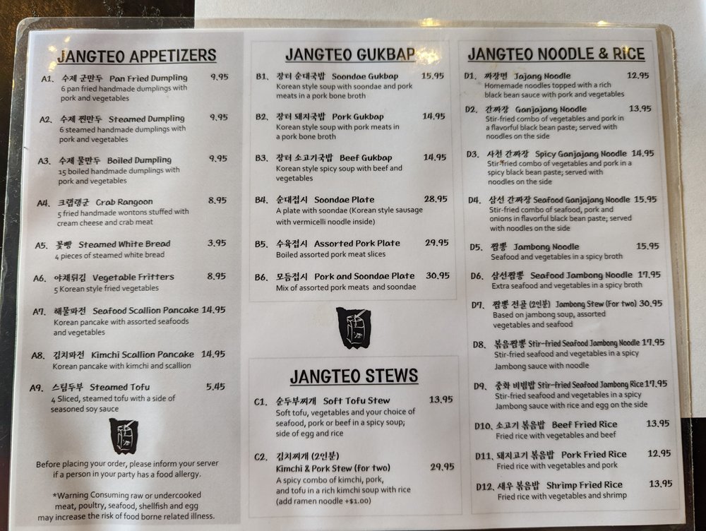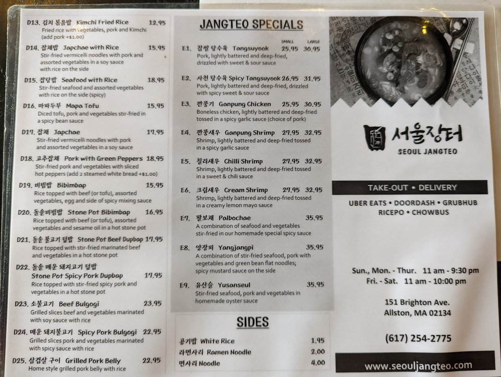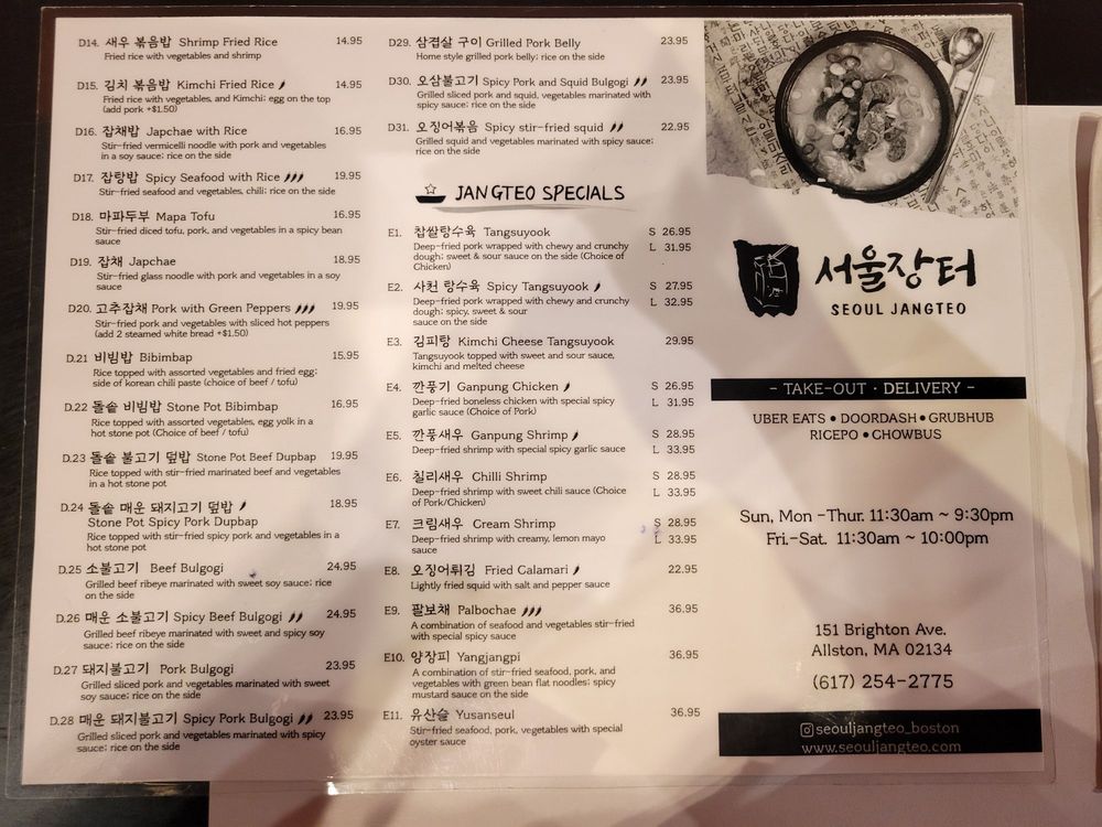 Seoul Jangteo Menu