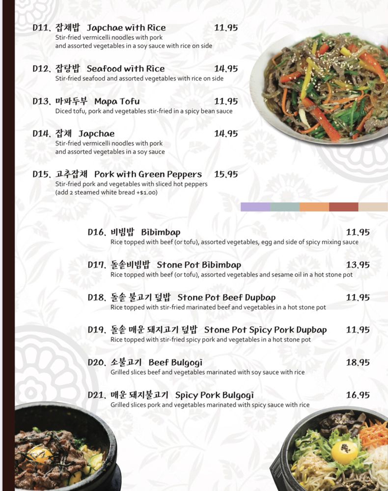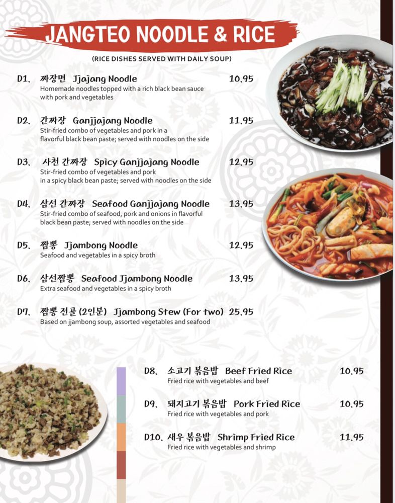 Seoul Jangteo offers a fusion of Korean-Chinese cuisine, specializing in noodles. Located in Boston, MA, this restaurant provides a range of options including dumplings, seafood pancake, and traditional Korean soups like Soondae Gukbap and Pork Gukbap. Customers praise the flavorful Jajang Noodle, Tangsuyook, and Jambong Noodle. The restaurant's authenticity is evident by the diverse clientele, with many Korean diners enjoying the food. Service is quick and friendly, making it a great spot for a satisfying meal. The menu also features dishes like kimchi fried rice, spicy pork bulgogi, and hot stone pot beef bibimbap, all bursting with savory flavors. Seoul Jangteo excels in providing generous portions and well-executed dishes, making it a go-to for Korean comfort food enthusiasts.